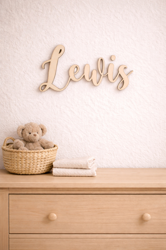 Een naam van hout is dé perfecte manier om de baby- of kinderkamer persoonlijk te maken. Deze gepersonaliseerde naam van hout wordt speciaal voor jou uitgesneden en geeft iedere kamer een warme en unieke uitstraling.
