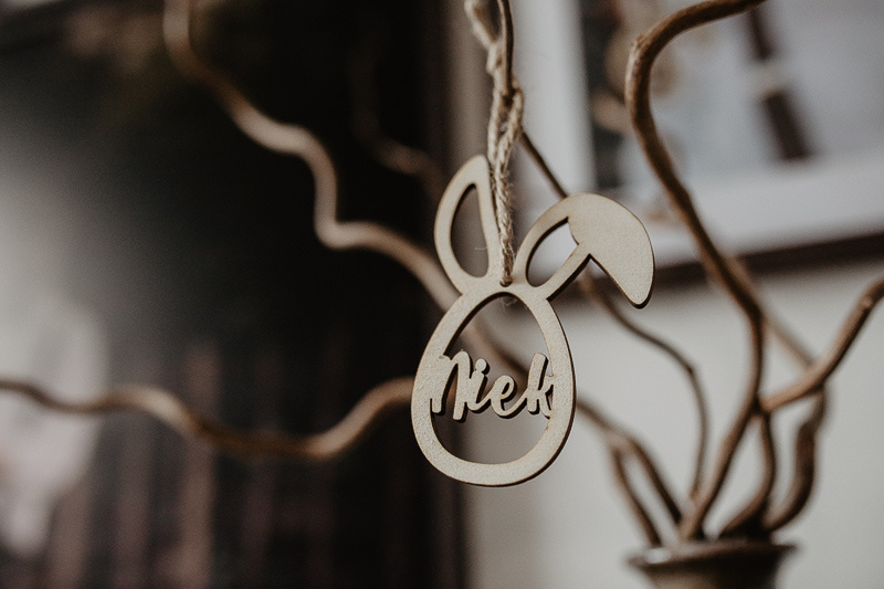 Ga naar de bloemist in de buurt en koop een paar mooie paastakken. Hang in elke tak een paashanger met naam en creëer een vrolijke, persoonlijke sfeer in huis. Door het natuurlijke hout past deze paashanger met naam perfect in zowel een modern als landelijk interieur.
