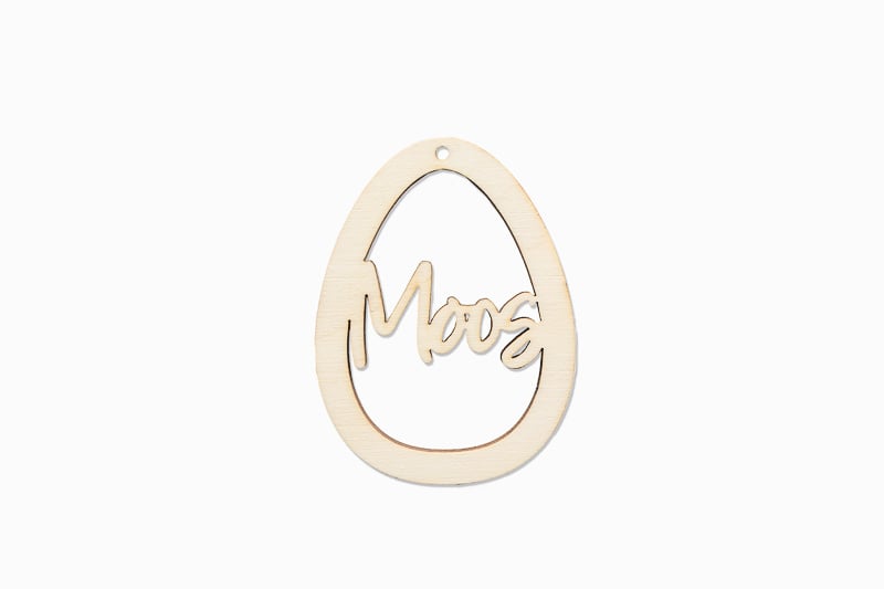 Houten paashangerHouten paashanger in paasei vorm met uitgesneden naam. Perfect voor paastakken, paasdecoratie of als cadeau. Hout, 6,0 x 8,0 cm. Origineel en stijlvol voor Pasen.