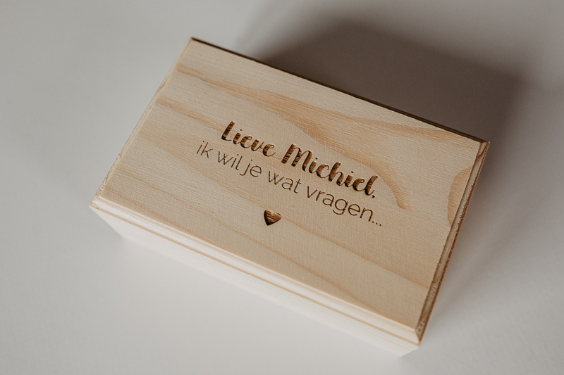 Gepersonaliseerd houten getuigen vraagdoosjeVerras jouw getuigen met een gepersonaliseerd houten vraagdoosje in 6-hoekige vorm. Voorzien van gegraveerde tekst, trouwdatum en scharnierend deksel. Uniek huwelijkscadeau en blijvend aandenken.