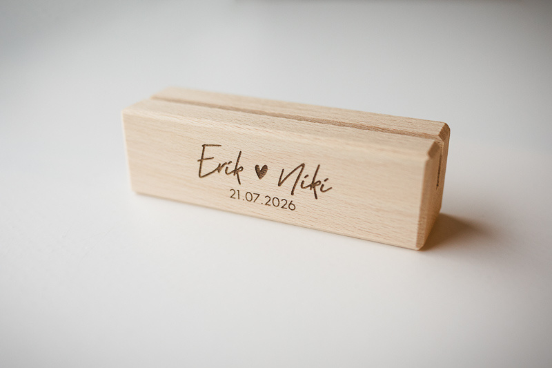 Deze houten kaarthouder is een prachtige manier om je favoriete herinneringen op een stijlvolle manier te presenteren. Het fotoblok van beukenhout biedt ruimte om een foto, menukaart, of ander speciaal kaartje in te zetten, waardoor het niet alleen als kaarthouder, maar ook als menukaarthouder of kaarthouder gebruikt kan worden.