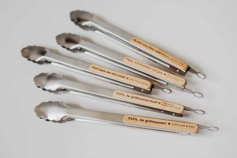 Zo wordt deze BBQ tang niet alleen praktisch, maar ook een blijvende herinnering.